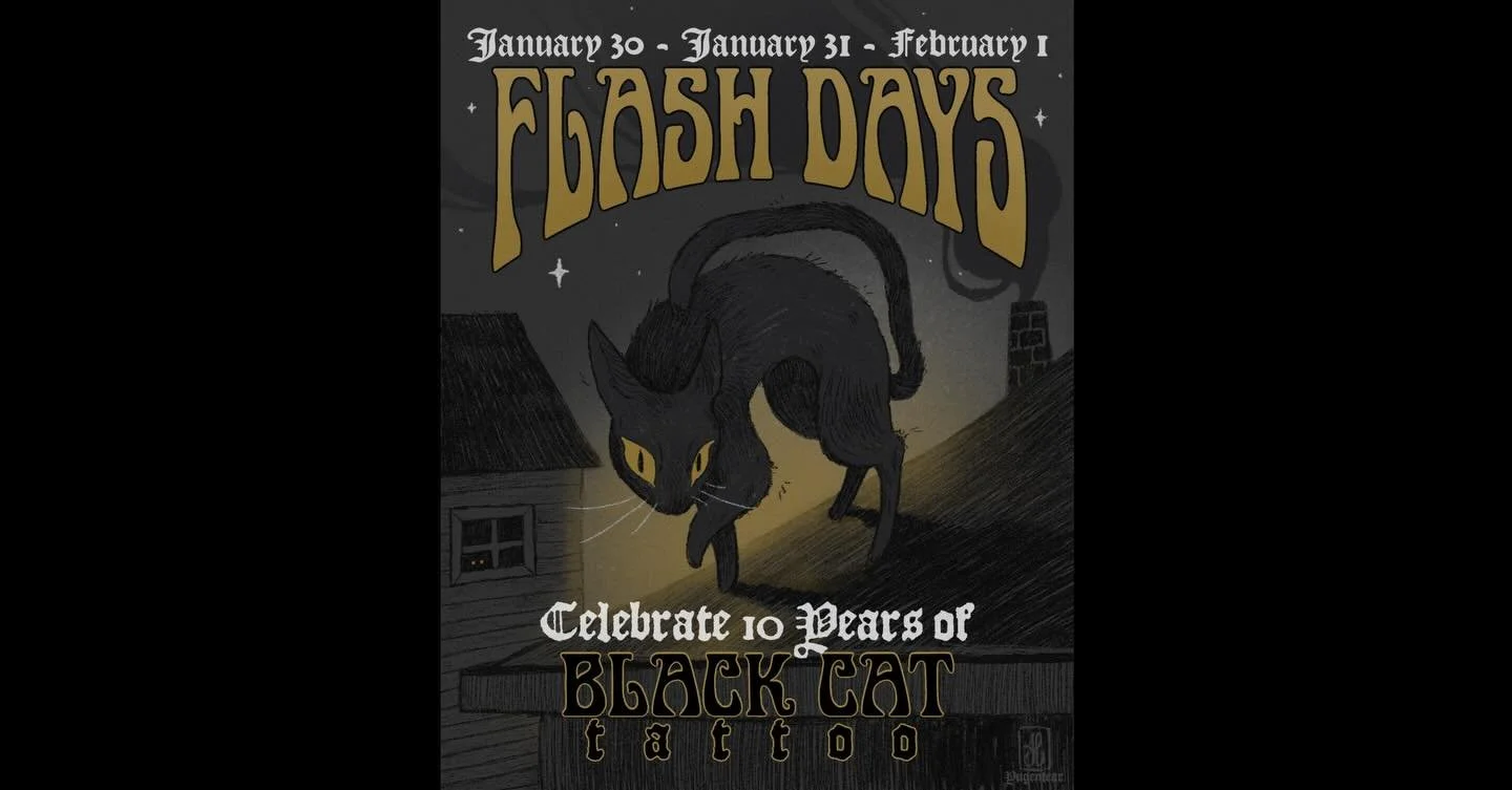 Head over to Black Cat’s instagram page to see any upcoming guest artist’s or check out each of our resident artist’s work via the highlights at the top of the page!