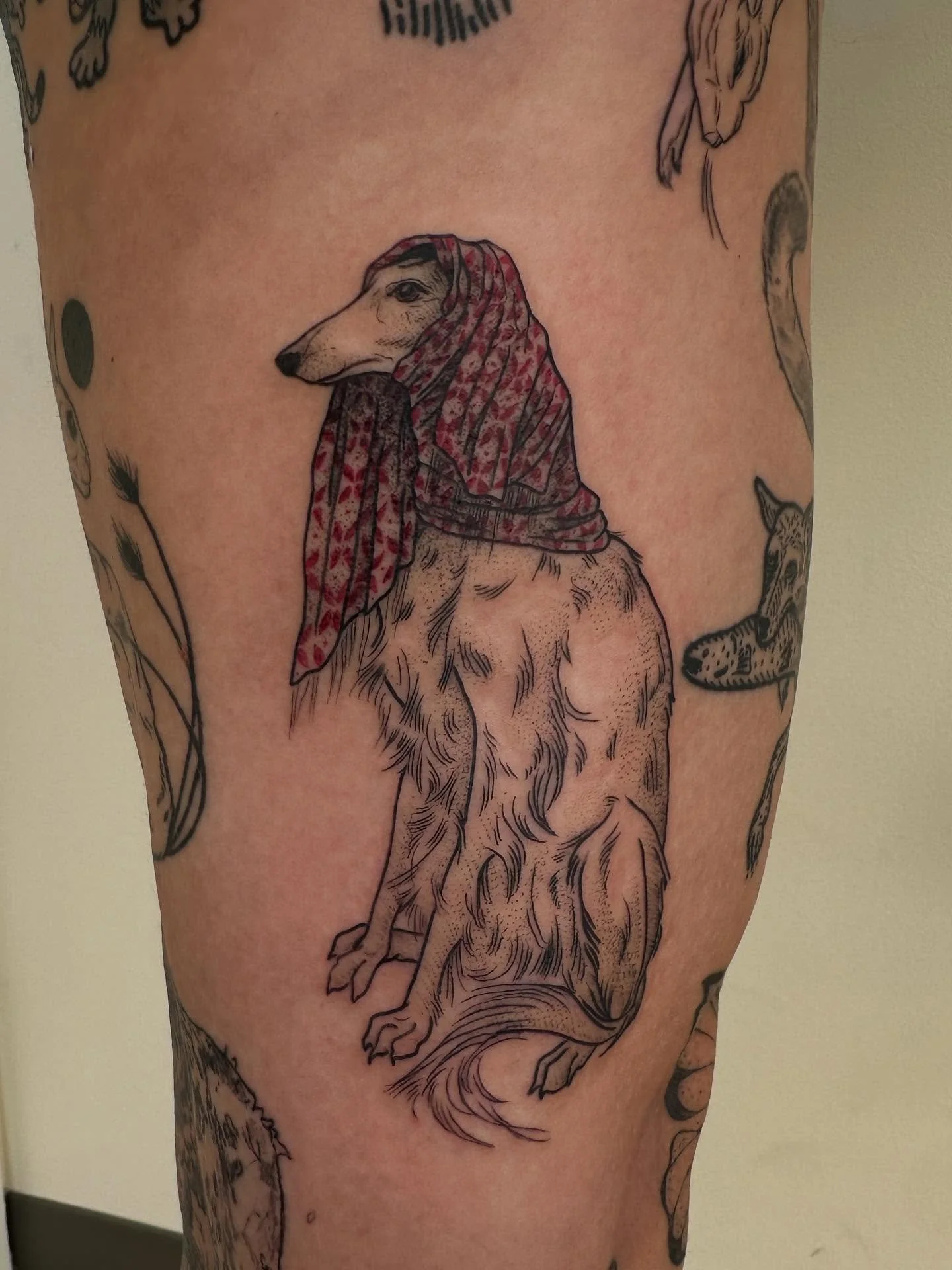 Themes of the occult, childhood fantasies and the ethereal run throughout her paintings and tattoos. Cate is also interested in the spiritual relationship between humans and animals, creating work that explores the delicate thread that connects them