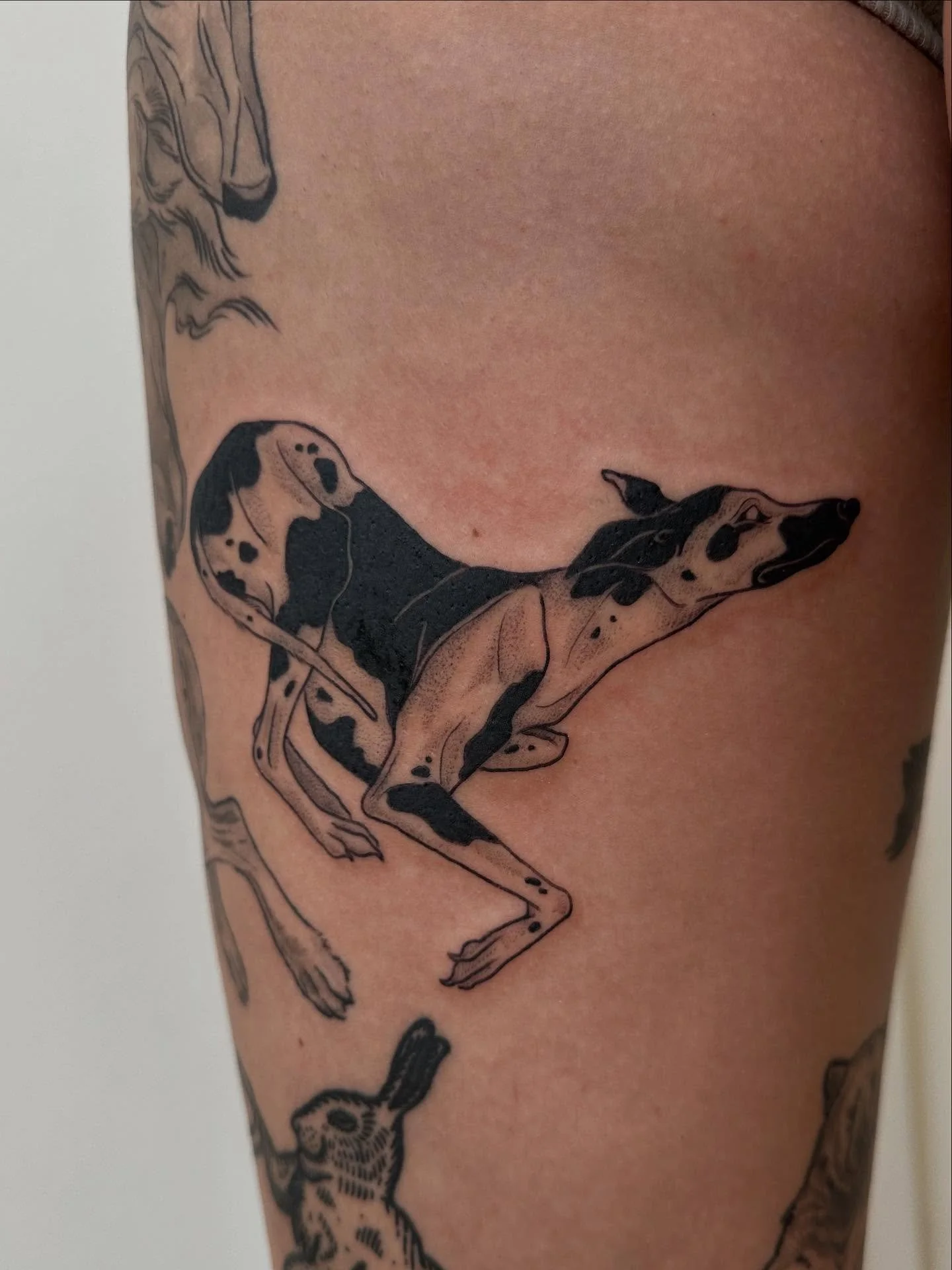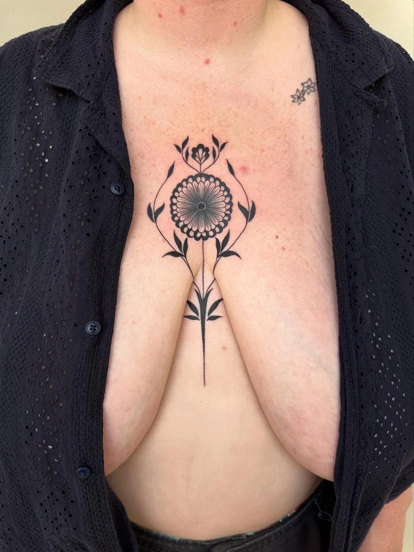 Cate’s tattoos are known for their beautiful simplicity and unique aesthetic, which seeks to explore the wonder and the horror of a world hidden in plain sight.